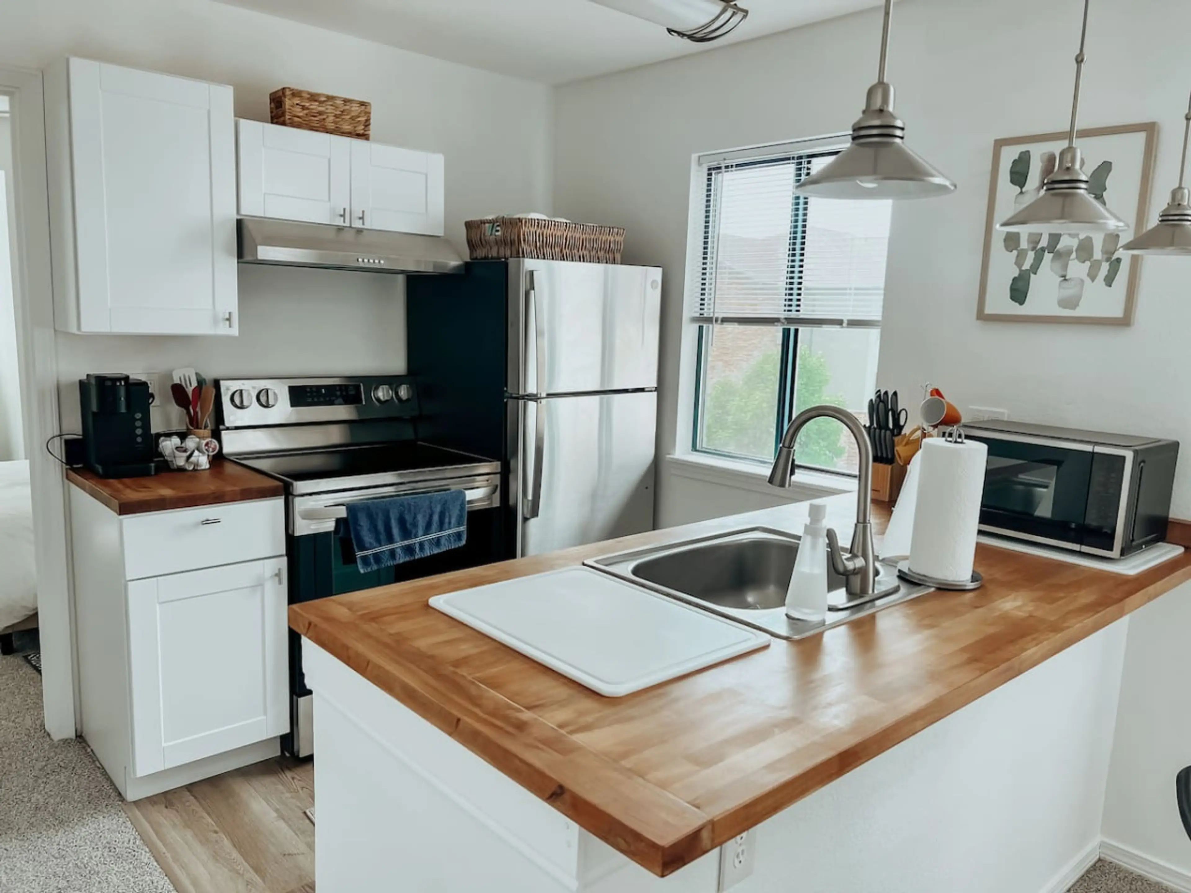 This newly updated one bed one bath condo is the perfect spot whether you are here for business or pleasure. It is minutes away from shopping, restaurants, DTC and beautiful trails and parks. Equipped with a full kitchen, full bath, private bedroom, walk in closet, living room and dining area/wor...