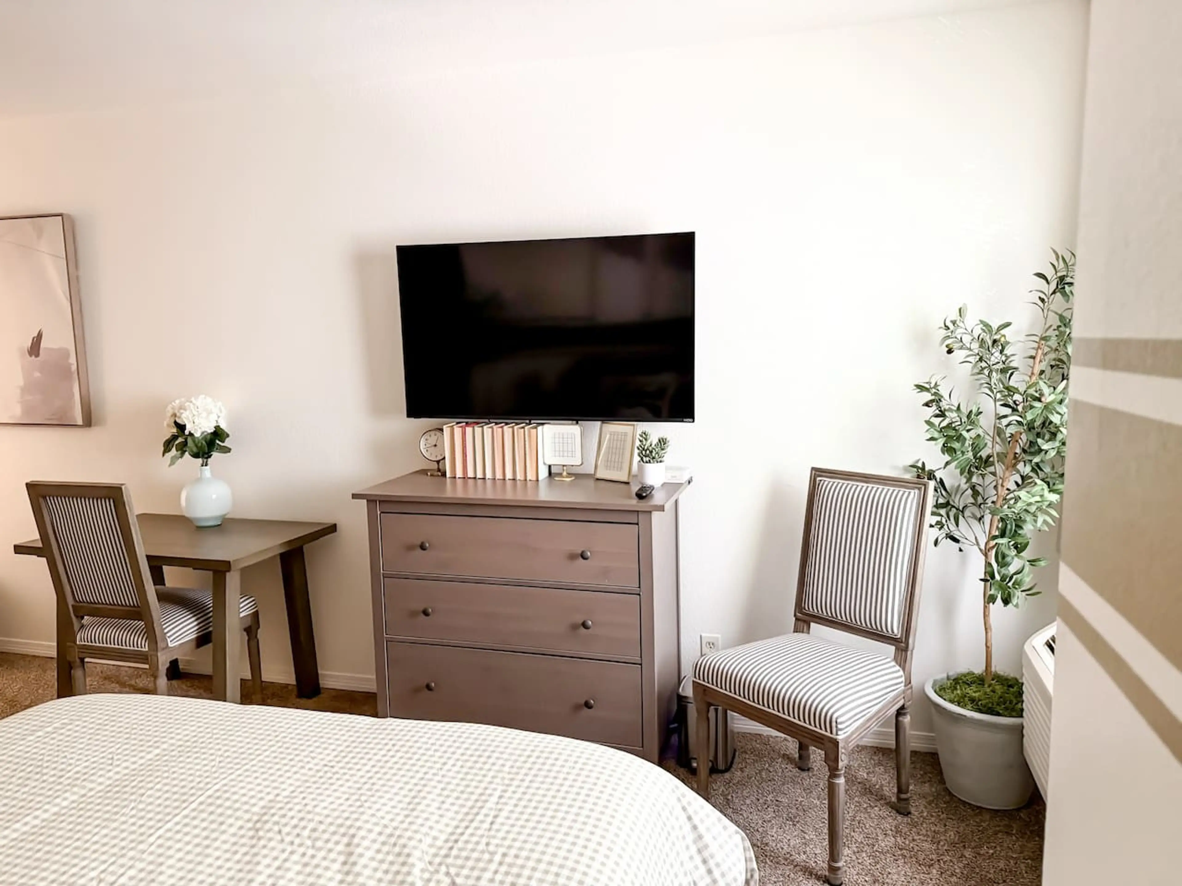This thoughtfully designed space is centrally located and comfortably sleeps two with a queen-sized bed featuring a premium mattress and fresh linens. Enjoy a full bathroom stocked with fresh towels and essential toiletries, plus a spacious walk-in closet for your convenience. Relax with a TV and di...